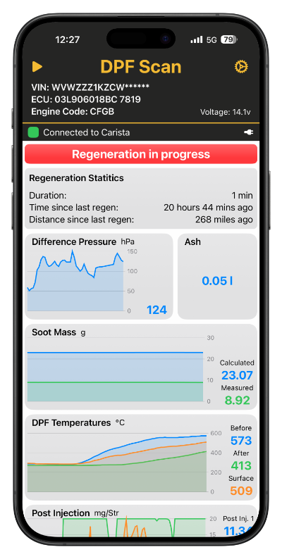 Unlock real-time Diesel Particulate Filter (DPF) readings from your VAG group vehicle.